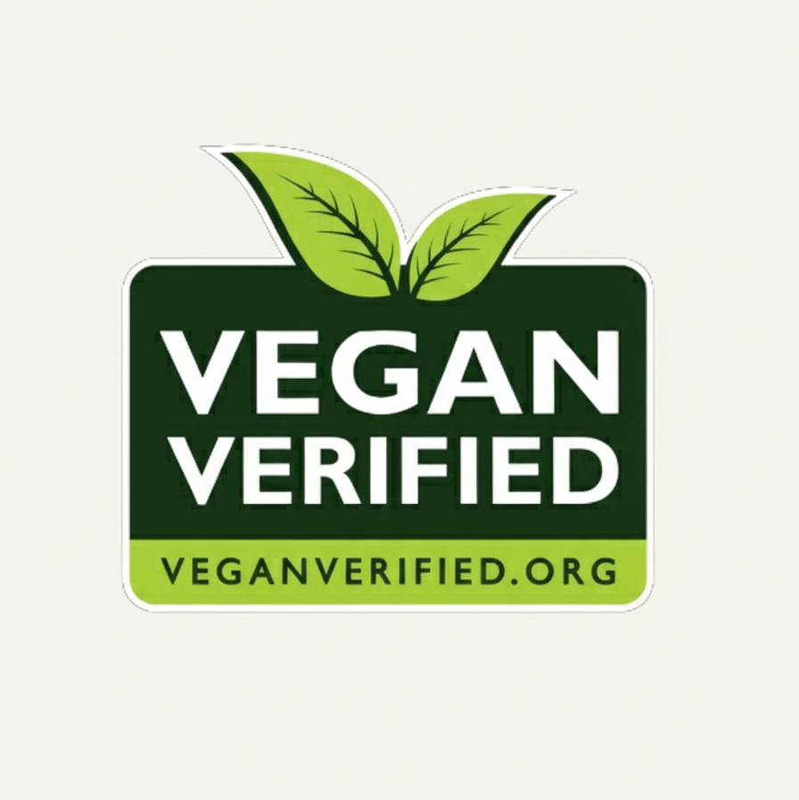 Het Vegan Verified-logo staat voor ethische en plantaardige normen. Het garandeert dat gecertificeerde producten geen ingrediënten van dierlijke oorsprong bevatten en ook niet op dieren zijn getest.