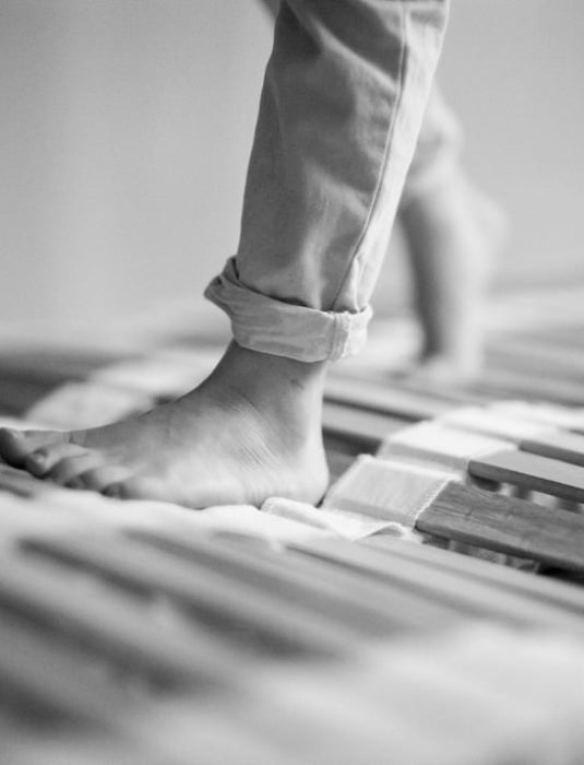 De ergo-base is een ingenieus onderdeel - een handige innovatie ontworpen om uw comfort naar een nieuw niveau te tillen. De ergo-base is het belangrijkste element van onze kenmerkende slaapsystemen. De ergo-base maakt het bedmatras vrijwel bodemloos door te reageren op elke lichaamsbeweging en het gewicht zachtjes te absorberen. Hij biedt maximale elasticiteit, zorgt voor een perfecte luchtcirculatie en zorgt voor een gelijkmatige ondersteuning en gewichtsverdeling. Stap voor stap besteden we ontelbare uren om elke ergo-base met de hand te maken en in de bedmatrassen te plaatsen. Hij bestaat uit buigzame latten van eucalyptushout, die rusten op drie of vier banen natuurlijk rubber.