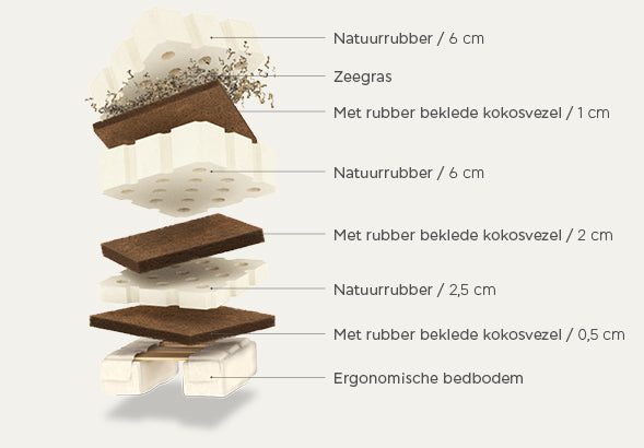 Natuurlijke materialen: Natuurlijk rubber, elastische kokosvezel, zeegras, ergo-base