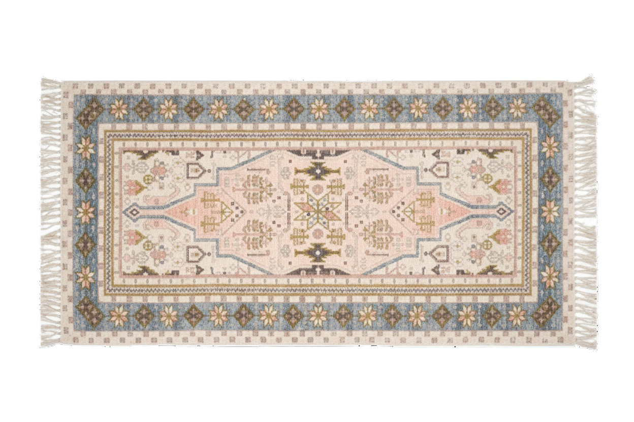 Aristocratisch blauw domineert dit vloerkleed, ondersteunt het tijdloze patroon en biedt een elegante luxe uitstraling.