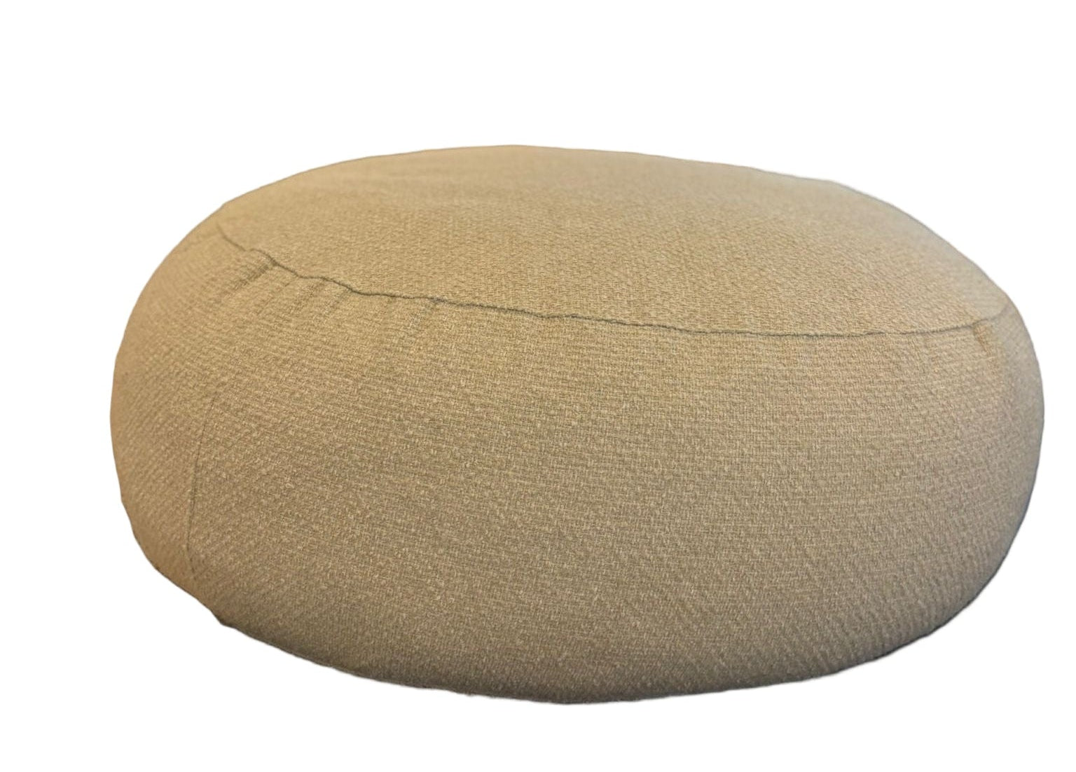 Deze poef is gevuld met natuurlijk rubber vlokken en verkrijgbaar in verschillende kleuren en stoffen. Elk stuk wordt speciaal op maat gemaakt en kan daarom niet geretourneerd worden.