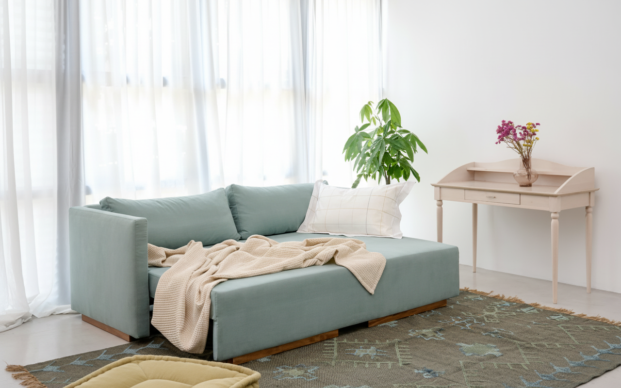 Maak kennis met Simos: een stijlvolle slaapbank die elegantie naadloos combineert met functionaliteit. Deze compacte maar toch chique oplossing verfraait moeiteloos elke ruimte en verandert met een eenvoudige beweging van een moderne tweezitsbank in een comfortabel queensize bed. Ontworpen met een minimalistische esthetiek vormt Simos een moeiteloze aanvulling op elk interieur; van gezellige woonkamers tot rustgevende werkkamers die omgetoverd worden tot logeerkamer. Het slanke silhouet en de massief eikenhouten poten stralen verfijning uit en zorgen tegelijkertijd voor langdurige duurzaamheid. Gemaakt met een toewijding die aansluit bij de filosofie van COCO-MAT is Simos gemaakt van natuurlijke materialen, waaronder natuurlijk rubber vlokken, elastische kokosvezels, katoen en dons. De zit- en rugkussens zijn gevuld met een mix van natuurlijk rubber vlokken en dons wat zorgt voor optimaal comfort en ontspanning.