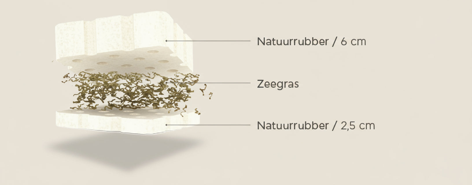 - Materiaal: Twee lagen natuurlijk rubber + zeegras